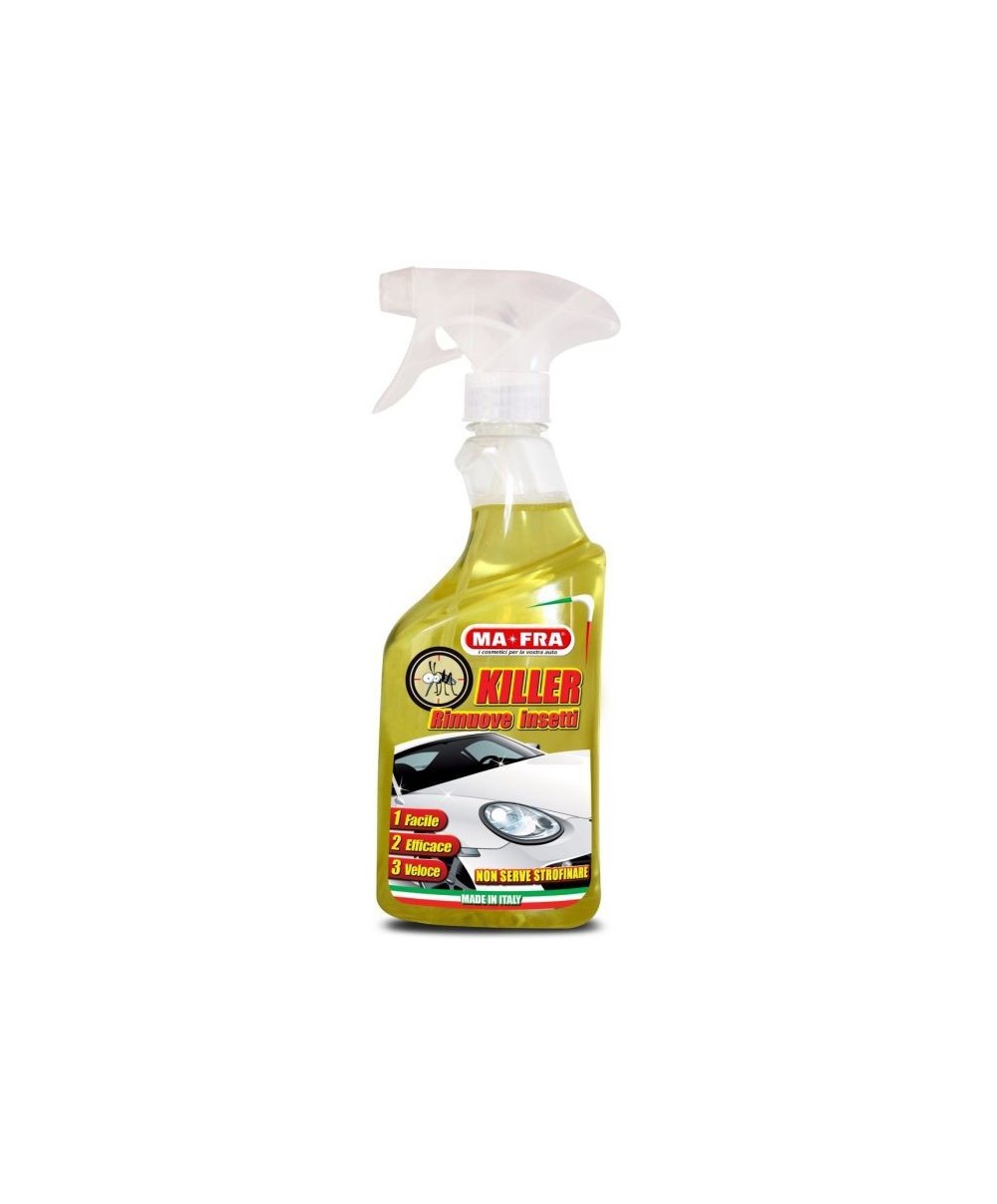 Pulisce: paraurti, vetri e fanaleria. Facile: semplice da utilizzare . Sicuro: adatto a tutte le auto. Senza la necessità di strofinare, scioglie ogni residuo di insetto anche secco, dalla lamiera e da tutte le parti in plastica dell'auto senza intaccare la vernice con la massima sicurezza e in pochi istanti con l'ausilio di una semplice spugna o guanto in microfibra. Flacone spray 500 ml.