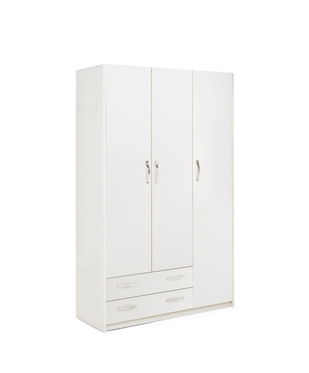 LINEA MODERN in truciolare con rivestimento in melaminico, spessore fiancate 18 - 22 mmArmadio a 3 ante + 2 cassetti. Dimensioni cm 135x52x210h Colore bianco frassino