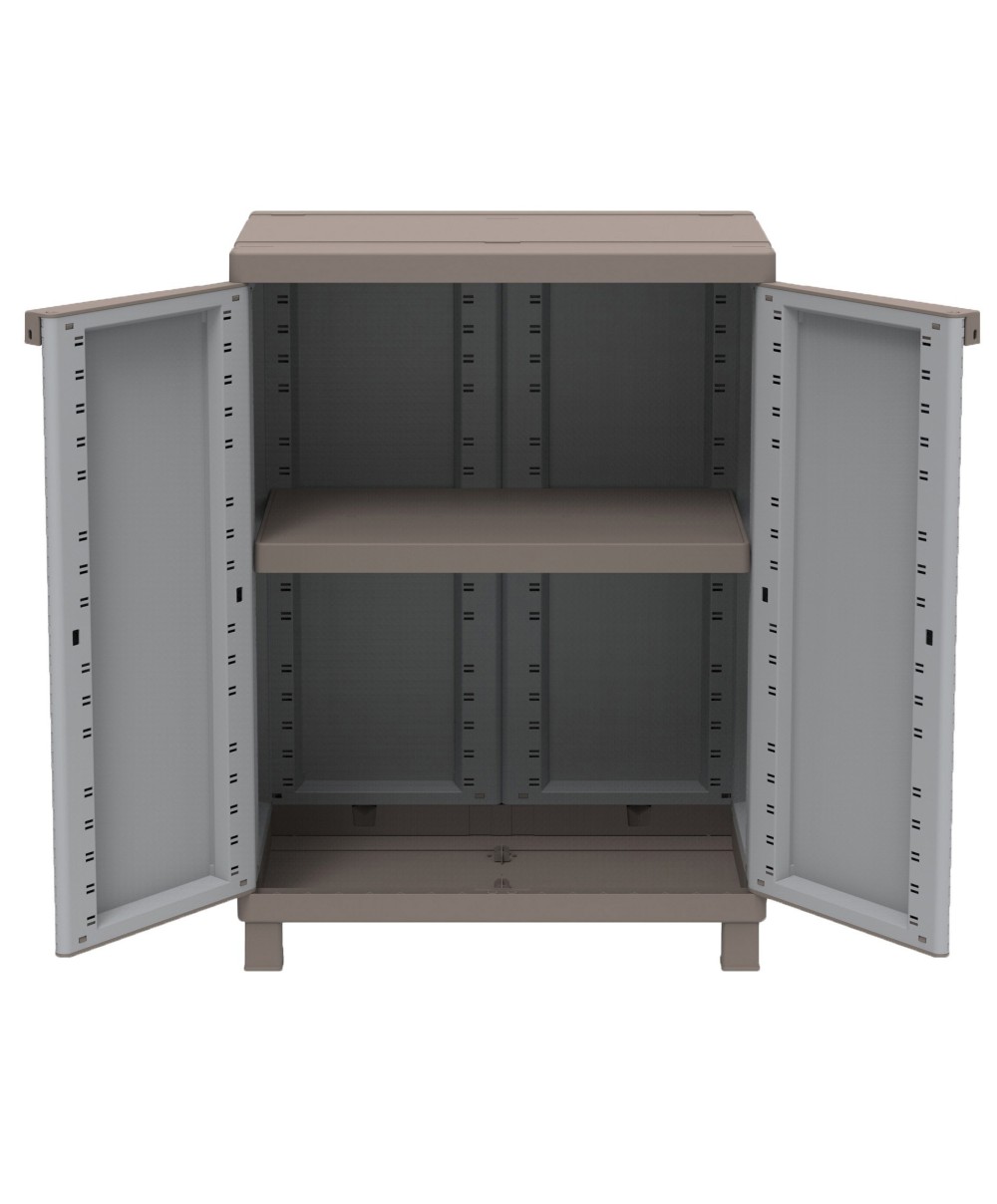 multifunzionale Serie C-RATTAN Art. TP680 basso in polipropilene. Finitura effetto rattan. Ottima resistenza agli agenti atmosferici. Doppia anta con apertura a 180. 1 ripiano interno regolabile in altezza. Dotato di piedini. Portata ripiano max 20 kg (uniformemente distribuiti). Possibilit di chiusura con lucchetto (non incluso). Dimensioni 68x39xh91,5 cm. Peso prodotto 7,293 kg. Dimensioni imballo 80x40xh27,5 cm. Peso imballo 8,344 kg.