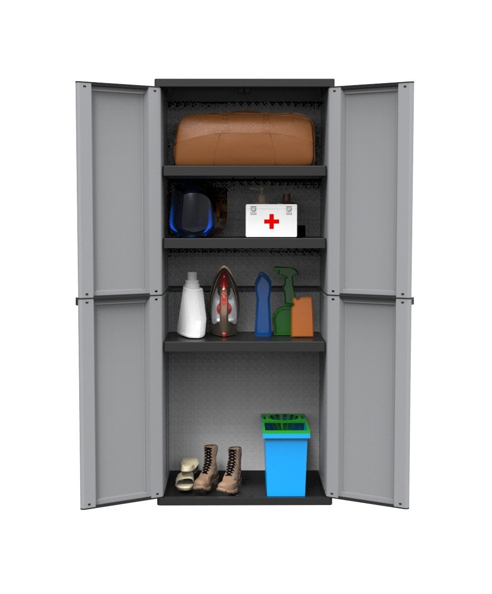 multifunzione Serie J-LINE Art. 268 in polipropilene. Ottima resistenza agli agenti atmosferici. Doppia anta con apertura a 180. 3 ripiani interni regolabili in altezza. Portata ripiano max 20 kg (uniformente distribuiti). Possibilit di chiusura con lucchetto (non incluso). Dimensioni 68x37,5xh 163,5 cm, Dimensioni imballo 80x41xh36 cm.