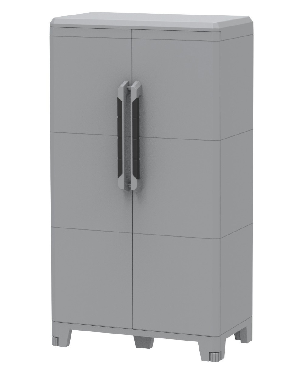 multifunzione Art. MODULAR 3 in resina antiurto. Anti UV. Cerniere antivento in metallo. Fondo rinforzato con 6 piedi di cui 2 frontali regolabili in altezza. Moduli interconnessi e sovrapposti. Ideali per esterni IP43. Resistente alle temperature -5/+40C. Doppia anta a battente con due ripiani interni modulari. Maniglia in materiale bicomponenete. Portata piano base max 80 kg, ripiano max 40 kg (uniformemente distribuiti). Dimensioni 78x43,6xh143 cm. Dimensioni imballo 92x41xh45 cm.