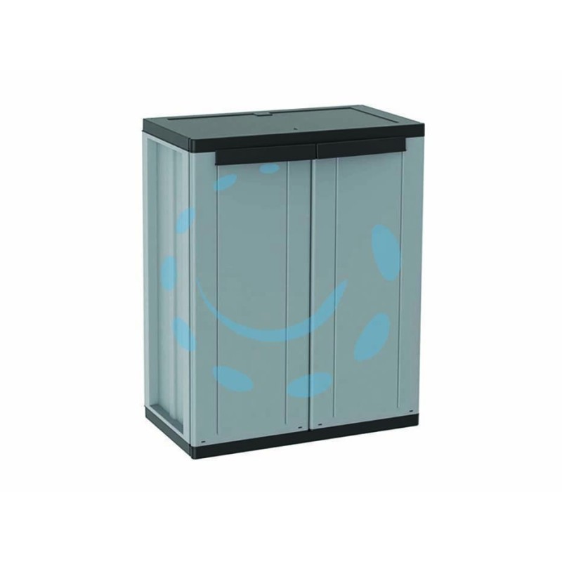 colore grigio/nero, a due ante, dotazione 1 ripiano interno regolabile, pratica apertura delle ante fino a 180°