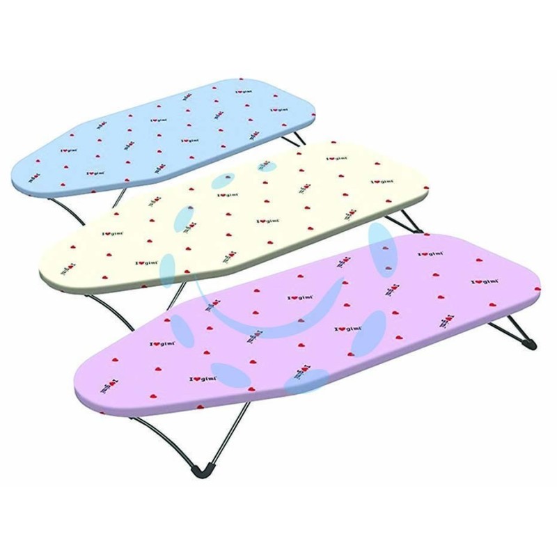 mini asse da stiro in acciaio con pratico gancio a scomparsa per appenderlo nell'armadio - copriasse 100% cotone con imbottitura in mollettone - disponibile con design assortiti del copriasse