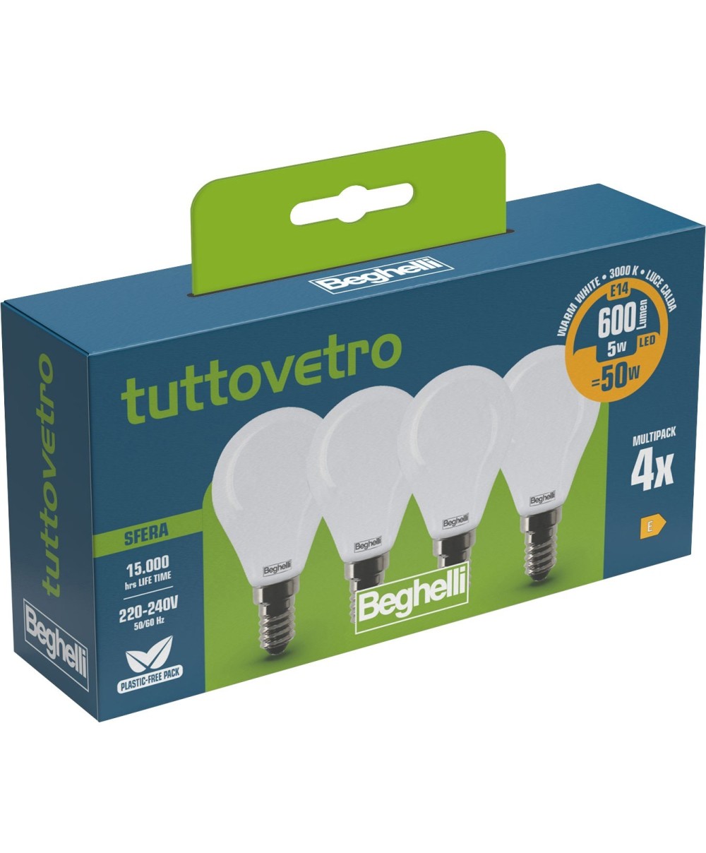 Beghelli led sfera e14 5w 58056 calda 3000k set 4 - CF 10