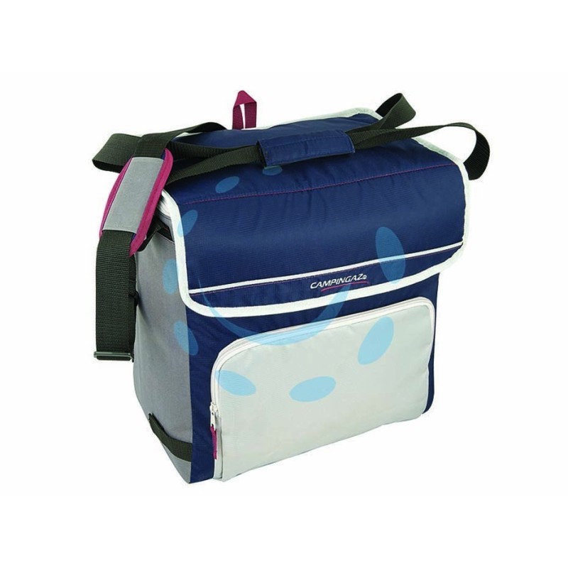 capacità lt.30 - contiene 9 bottiglie da lt.1,5 - peso gr.760 - ripiegabile con tracolla regolabile e tasca frontale - tessuto bicolore blu/grigio - isolamento con schiuma isolante in PE con celle chiuse da mm.6 - prestazioni: 16 ore con "FREEZ' PACK" (venduto separatamente)