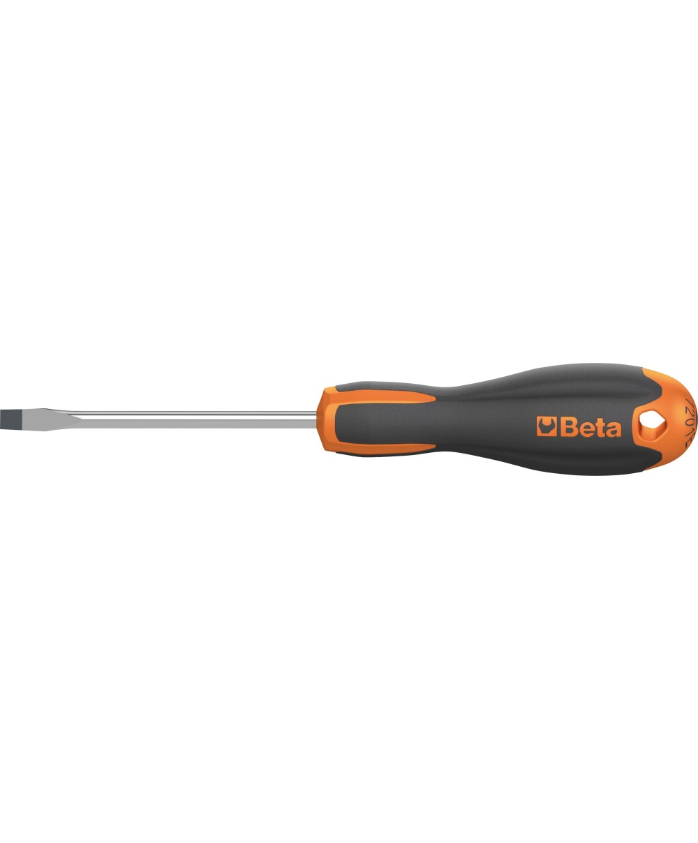 Art. 1201 per viti con intaglio, lama piatta in acciaio al cromo vanadio, punta nera. Impugnatura bimateriale. Diametro 4 mm Lunghezza 125 mm
