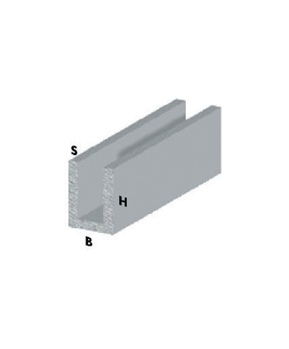 canalino a U in alluminio. Dimensioni 10 x 1 x h 10 mm. Altezza 200 cm. Finitura silver.