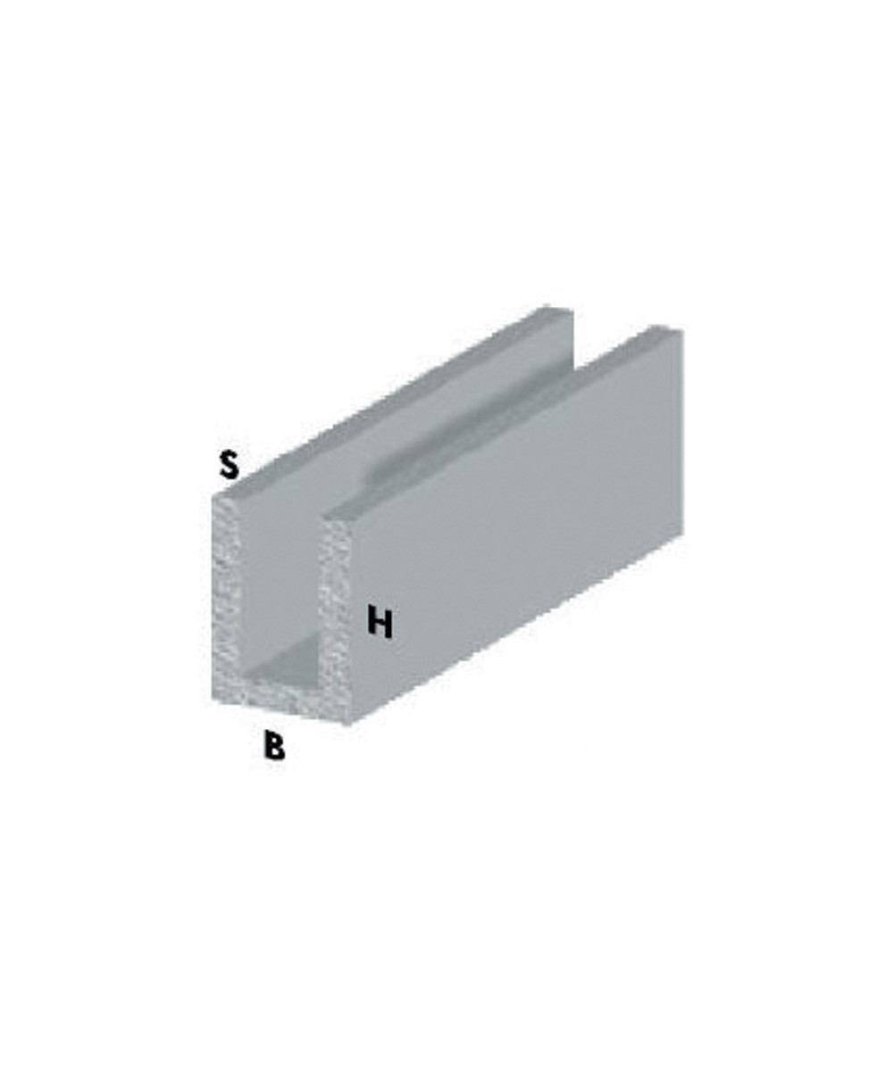 canalino a U in alluminio. Dimensioni 10 x 1 x h 15 mm. Altezza 200 cm. Finitura cromo.