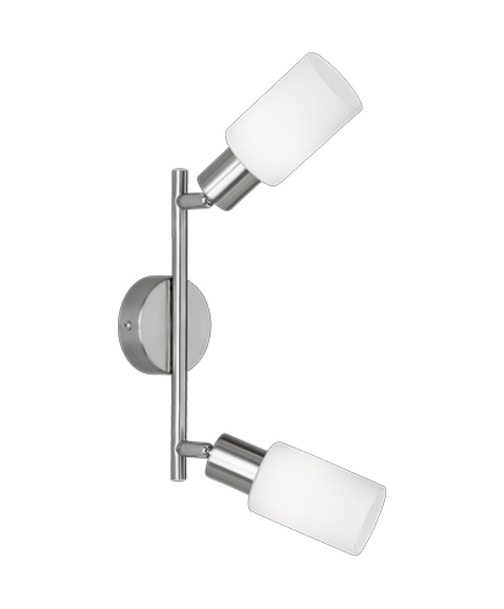 Mod. Mars realizzata in metallo nichel opaco e coppette in vetro bianco. Montaggio sia a parete che a soffitto. Lampadine 2xE14 (attacco piccolo) non incluse, max 40W - 230V - 50 Hz - IP20. Dimensioni 250x80xh210 mm. Peso 0,44 kg.
