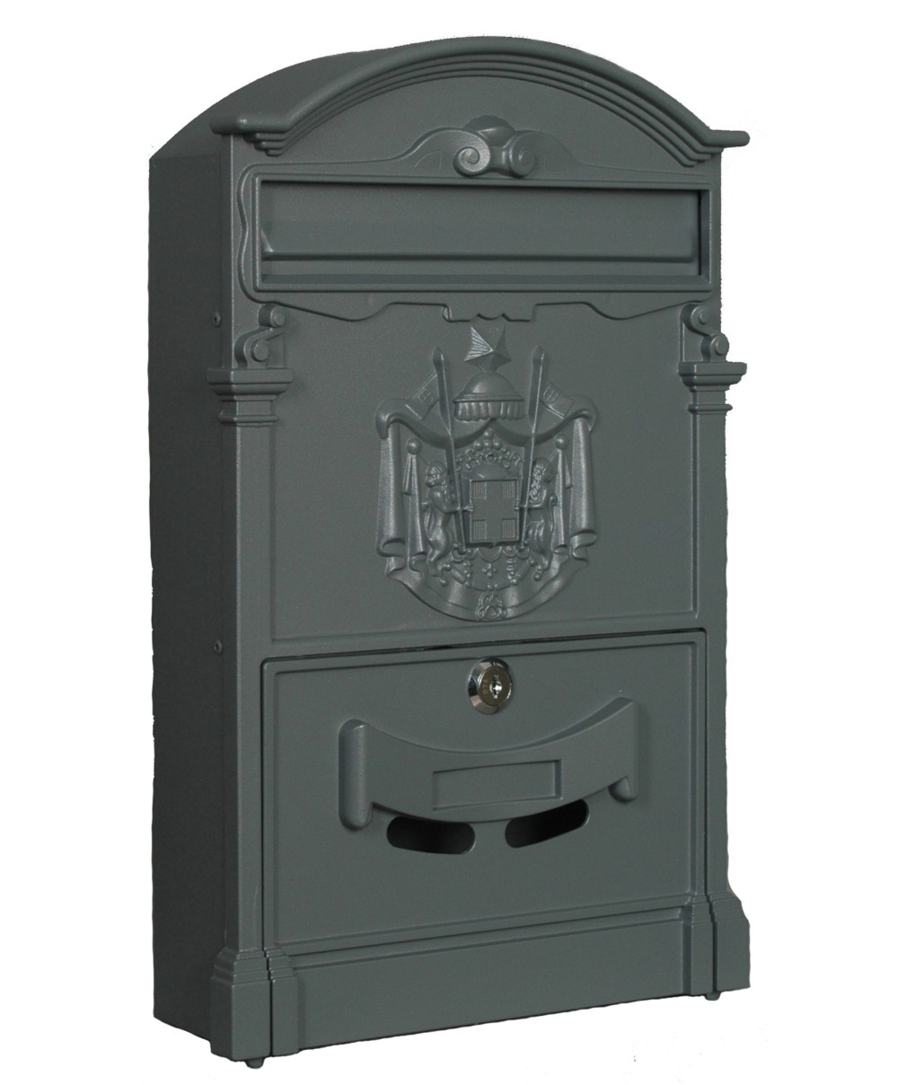 Mod. REGIA POSTA in alluminio pressofuso verniciato. Serratura a cilindro. Con 2 chiavi. Dimensioni mm 260x90x410h Finitura grigio ghisa