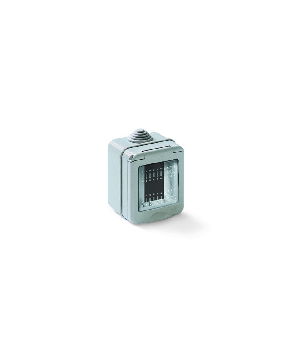 Serie My Life Box System contenitore da parete. Grado di protezione IP 55. Per apparecchi tipo My Life. Predisposta per entrata tubi 20 mm. Passacavi in materilae morbido a pi circonferenze concentriche. Per apparecchi tipo Magic. Portello di protezione con interno trasparente morbido. Moduli installabili 1. Dimensioni 67x59x83 mm. Colore grigio.