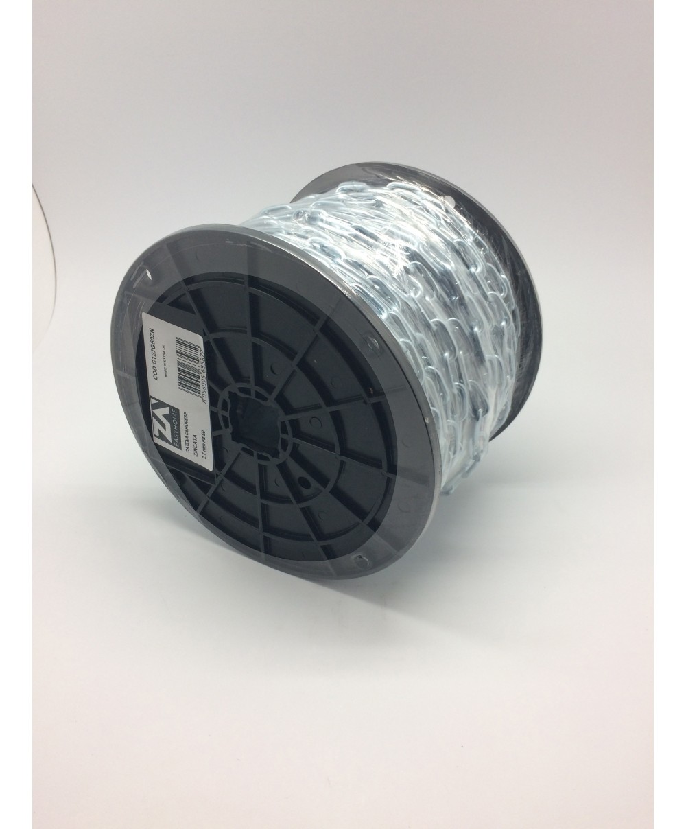 Tipo maglia genovese in acciaio saldata e zincata DIN 5685/A. Spessore 10 mm. N. 30 Dimensioni maglia 60 x 40 mm. Bobina 10 m.