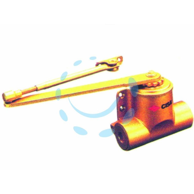 corpo monoblocco in ghisa, colore oro, braccio in acciaio senza arresto, valvola di regolazione della velocità di chiusura