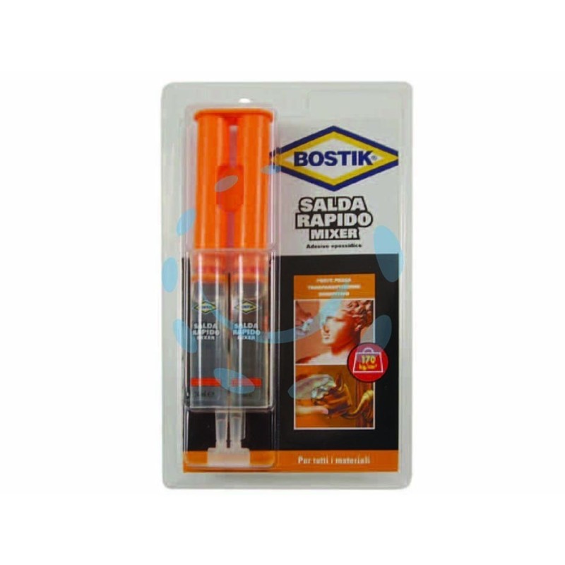 in blister, adesivo epossidico bicomponentea forte presa, 100% trasparente, dosaggio facilitato con siringa, incolla in 20 minuti; ideale per pietra, terracotta, porcellana, gesso, cemento, marmo e pietre dure, metallo, legno, vetro e alcuni tipi di plastica, anche nel caso di combinazioni di materiali diversi - non adatto per polietilene (PE), polipropilene (PP)e(PTFE)