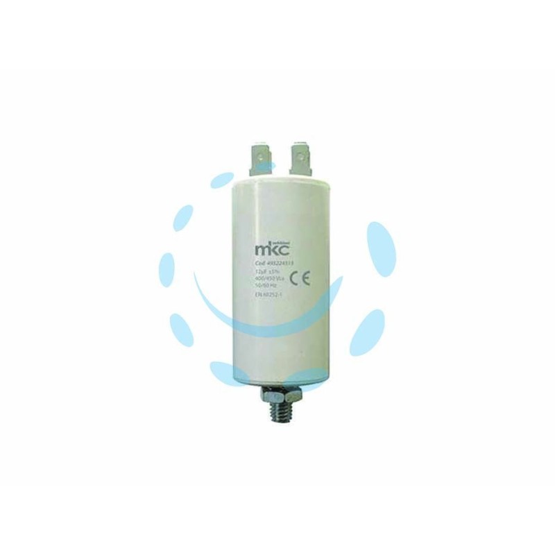 condensatore di spunto in polipropilene - terminale fastom mm.6,3 - tensione di lavoro 400/450Vca - temperatura di lavoro -25°/85°C - frequenza 50/60 Hz - IP20 - fissaggio codolo M8