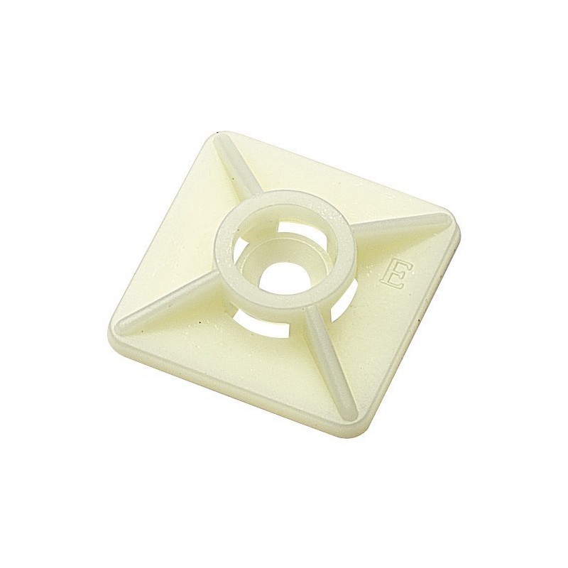 realizzata in ABS. A due vie per lancoraggio dei cavi. Bidirezionali. Con adesivo base gomma assicura una buona adesivit iniziale e permette un fissaggio immediato del cavo. Per ambienti interni. Quadri elettrici. Dimensioni 19 x 19 mm. Scatola da 10 basette.