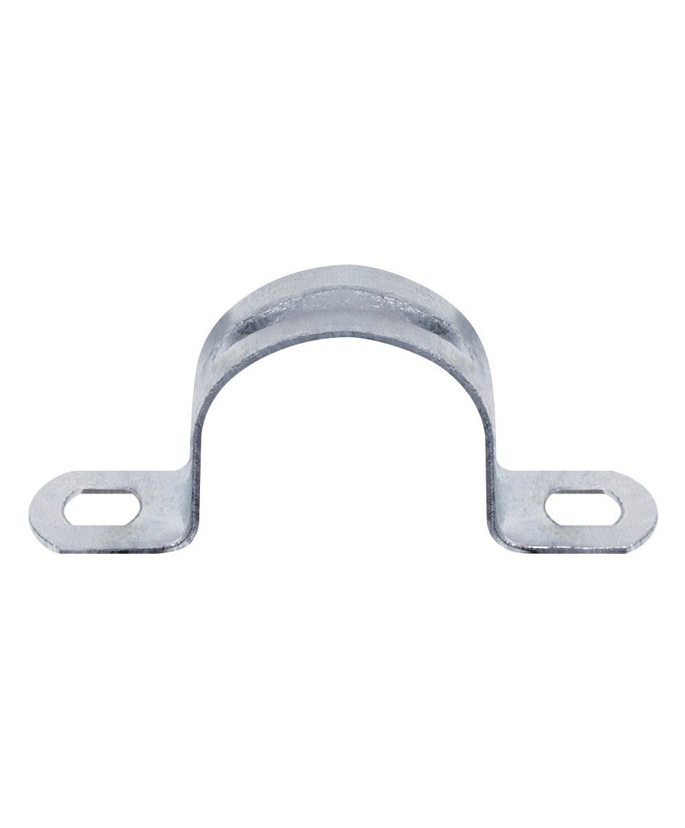 in acciaio zincato bianco. A 2 fori 4x7 mm. Diametro tubo 13 mm. Spessore 0,8 mm. Confezione blister 10 pz