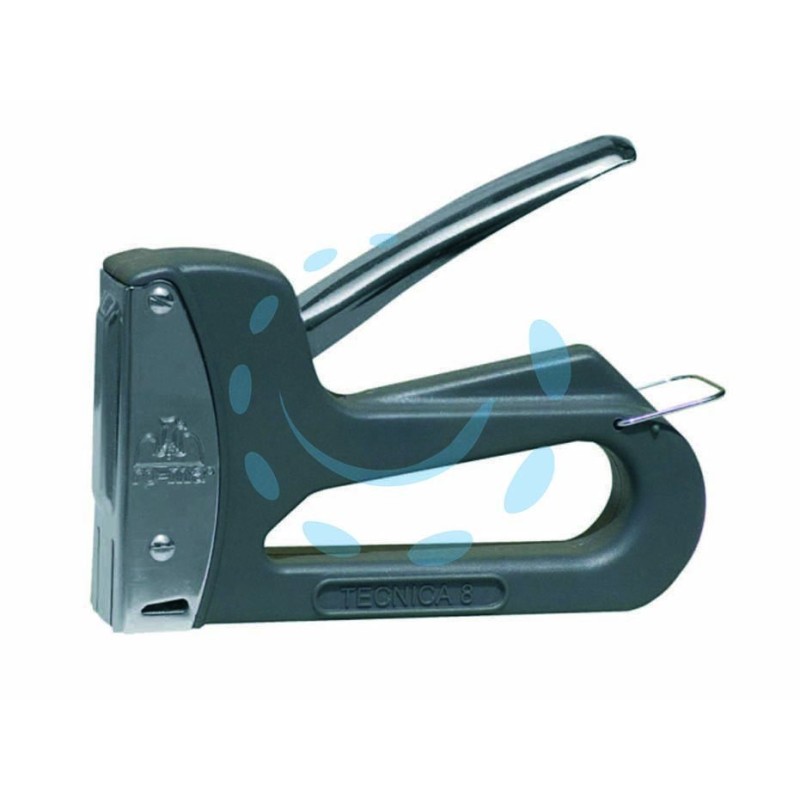 corpo in ABS, notevole forza di infissione per lavori di decorazione, per fissare tutti i tipi di carta e stoffa, rivestire sedie e decorare vetrine, fissaggio di tappezzeria e ricoperture di divani e mobili - carica da sotto - per punti 105-108