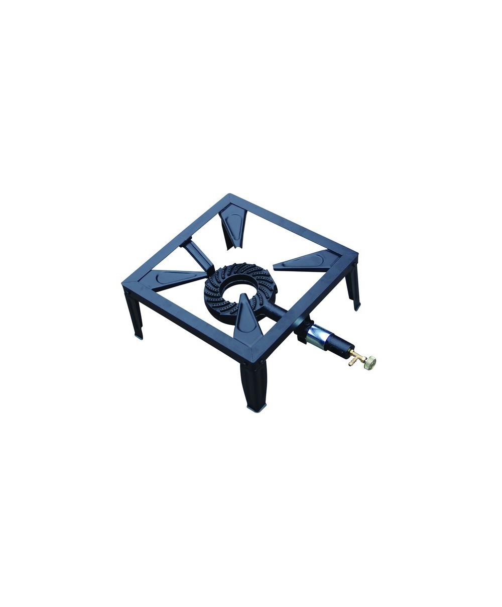 Mod. POWERFIRE 4 Bruciatore in ghisa con 140 fori, 165 mm. Potenza 7,5 kW. Telaio in acciaio angolare 30 x 30 x 2 mm. Piedini in acciaio 35 x 35 x 2 mm. Omologato a norma CE. Dimensioni 400 x 400 mm. Peso 5,2 kg.