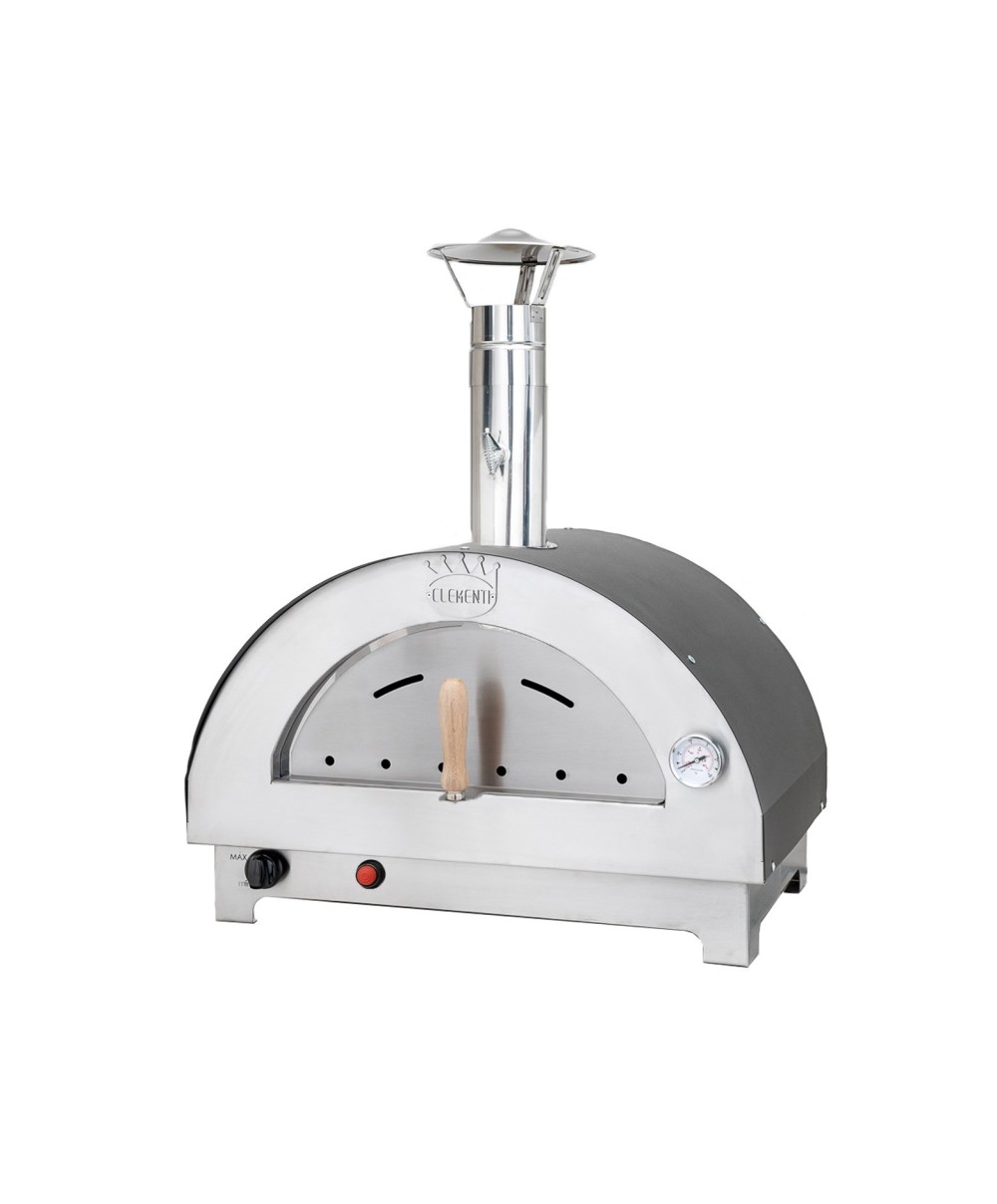 Forno Clementino a gas a cottura diretta, portatile e da appoggio. Bruciatore 7 kW. Ideale per luso anche in spazi limitati come piccoli balconi o giardini. Bruciatore a gas, posizionato lungo il lato sinistro della camera di cottura. Alimentato a GPL, coimentazione superiore, rivestimento interno inox, cottura veloce omignolo inox, sportello chiusura in acciaio, base in refrattario alimentare, accensione elettronica, manopola di regolazione. Dimensioni camera cottura 60 x 40 cm. Dimensioni esterne 71 x 52 x h 82 cm. Peso 50 kg