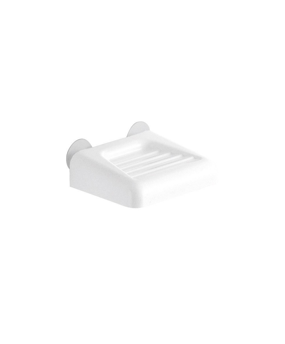 in resina termoplastica. Fissabile con viti o ventose. Disponibile anche in serie di 9 pezzi Art. 8011 portasapone. Dimensioni 15 x 12 x h 4 cm