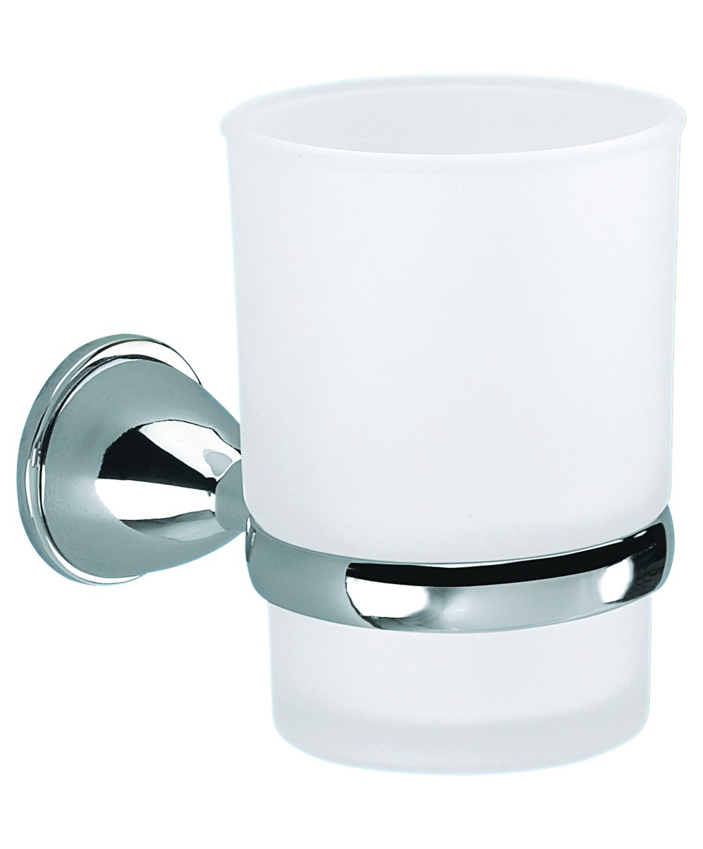 Dallo stile classico e semplice in acciaio inox e Cromall® con contenitore in vetro satinato arricchisce il tuo bagno con personalità. Adatto per spazzolini da denti e pennelli da trucco. Dimensioni 67 x 95 x h 110 mm. Art. GE10