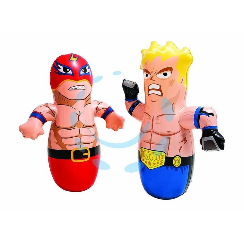 in vinile spessore superiore mm.0,20 spessore inferiore per l'acqua mm.0,30 - riempiendo la base di acqua, e gonfiando la parte superiore permette al gonfiabile di restare sempreinpiedi - dimensioni Boxer cm.74x94h. e Wrestler cm.72x91h.
