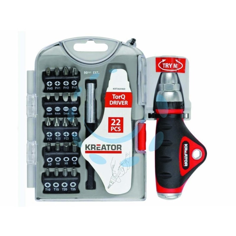 componenti in acciaio cromato, contenuto: 8 chiavi a bussola esagonali quadro 1/4" misure mm.5-6-7-8-9-10-11-12-13 + 9 inserti assortiti con punta a taglio/phillips/pozidrive/esagonale + 1 giravite portainserti mm.180 reversibile con impugnatura rivestita in gomma + 1 portainserti + 1 prolunga snodata mm.280 + 1 cassetta in plastica misure mm.270x145x55h.