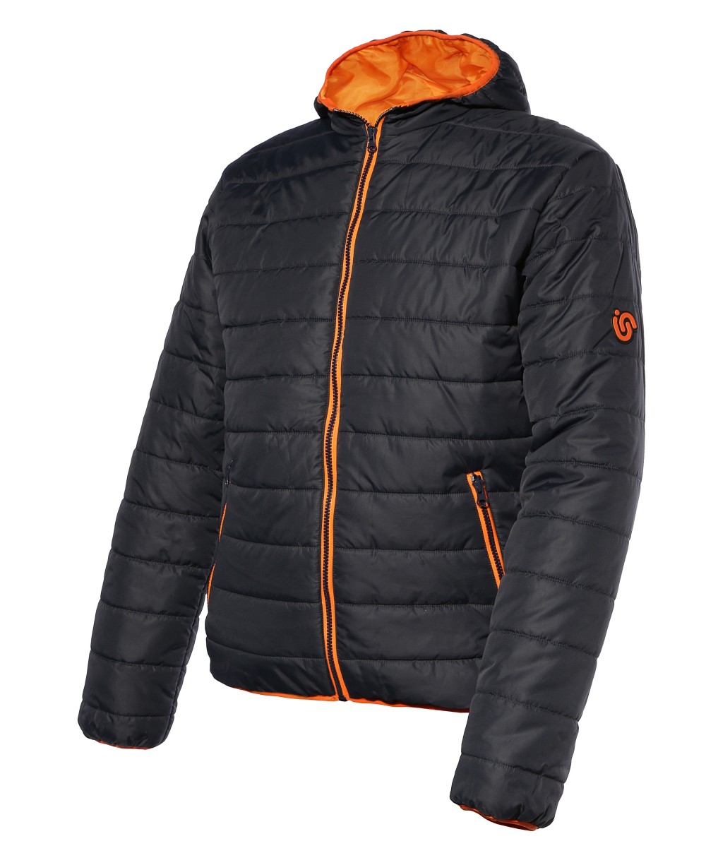 Mod. GREENWICH Piumino sintetico leggero da lavoro con 2 tasche frontali con zip e 1 tascone interno porta documenti. Realizzato 100% in poliestere imbottitura bianco 200 g/mq. Colore: Tessuto esterno blu scuro 60 g/mq con fodera interna arancio 56 g/mq. Taglia L