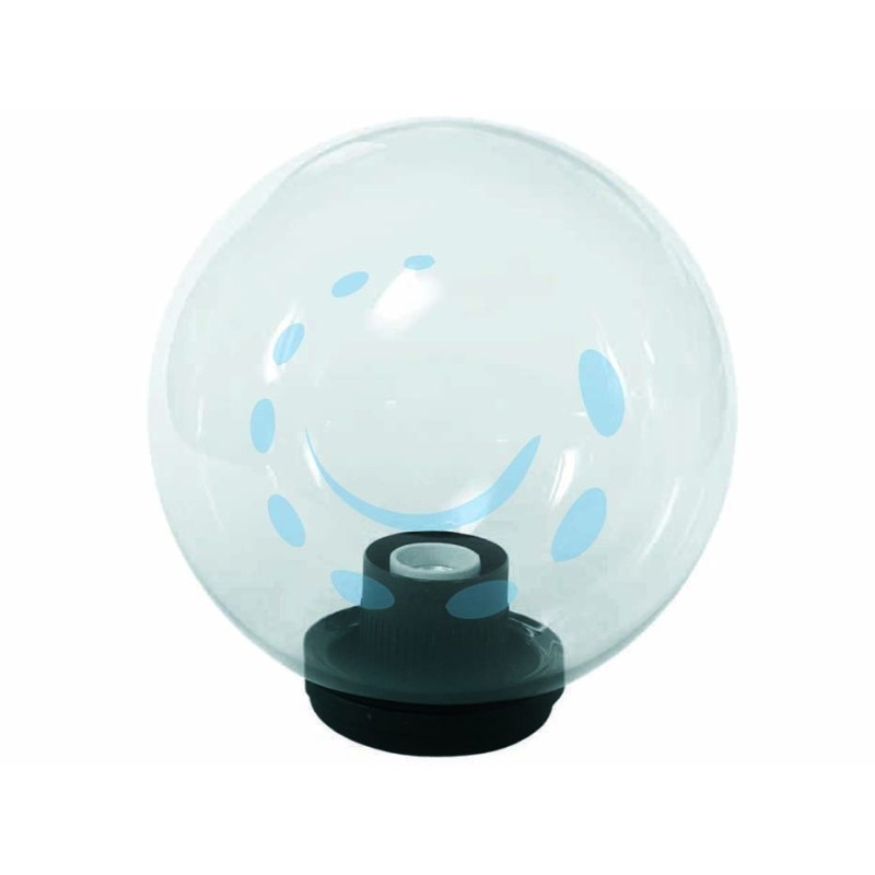 per uso in ambiente interno ed esterno - idoneo per il montaggio a palo o a parete con braccio ns codice 11136 - globo in metacrilato con innesto a baionetta, base in policarbonato nero completa di accessori per il fissaggio su palo di diametro mm.60 e portalampade E27 - CE - made in Italy