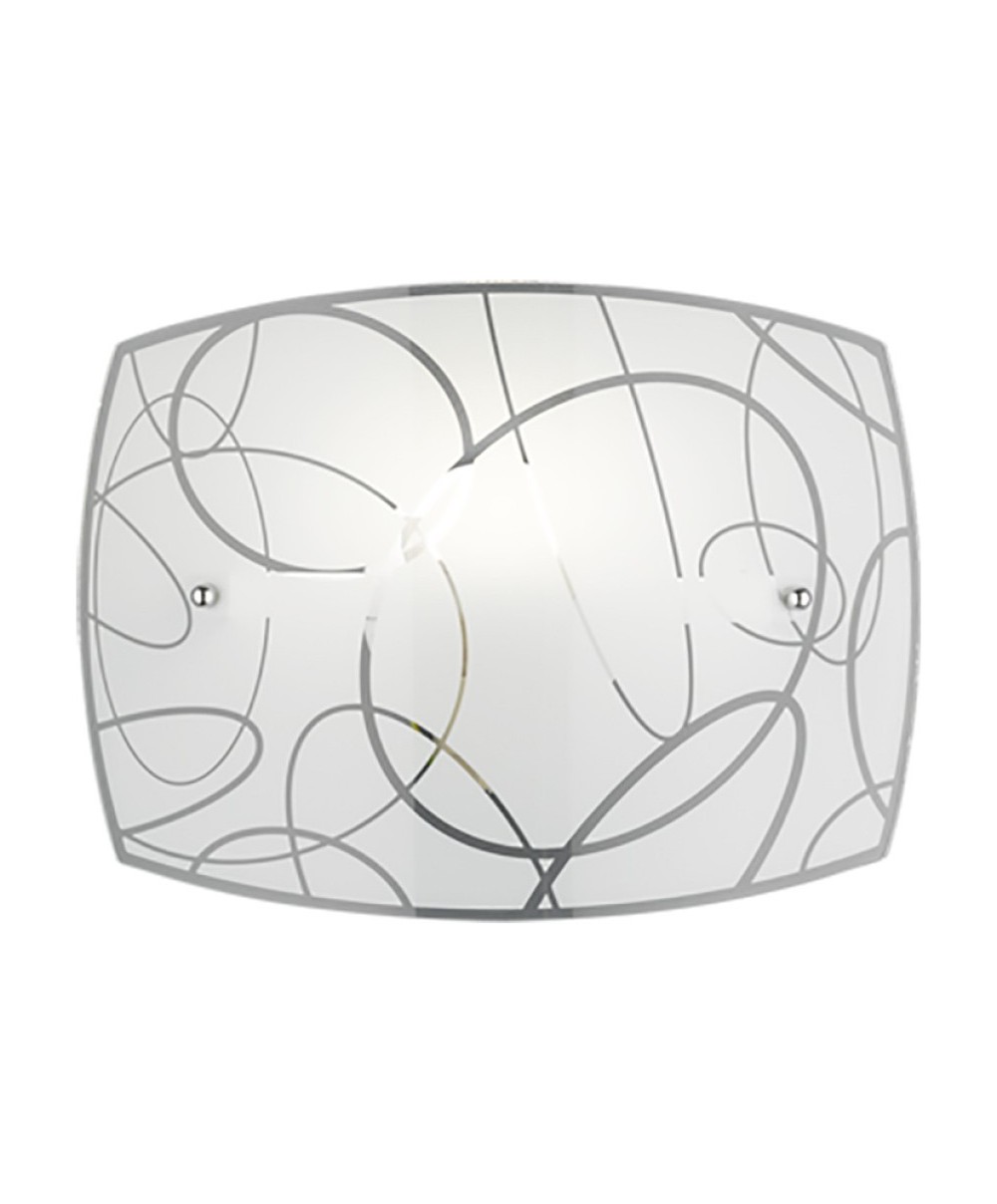 Mod. Spirelli da parete, in vetro bianco decoro cerchi. Lampadina E27 (attacco grande) non compresa, max 40W - 230V - 50 Hz - IP20. Dimensioni 300xh220 mm. Peso 0,560 kg.