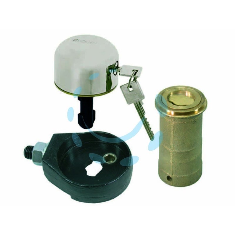 composto da lucchetto a forma sferoidale, squadra, cono bronzo con chiusura a molla, cilindro con 2 chiavi a 6 spine tipo mod.silca CIL6