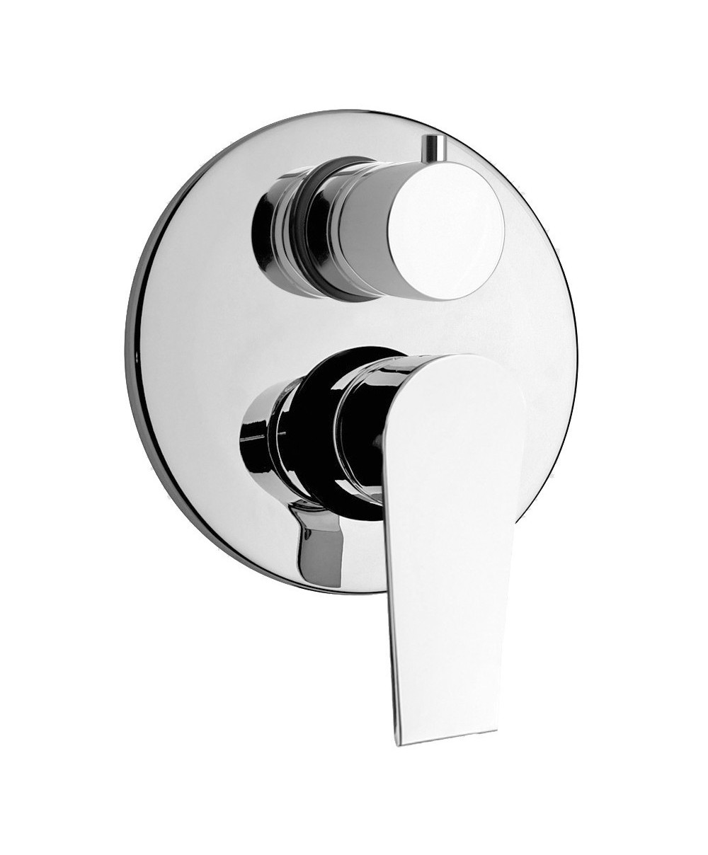 Serie LOGOS in ottone cromato. Monocomando. Miscelatore per doccia a incasso con deviatore automatico a 2 uscite. Temperatura max acqua calda consigliata 65° C. Cartuccia ø 35 mm Mod. 18M. Dimensioni ø 137 mm.