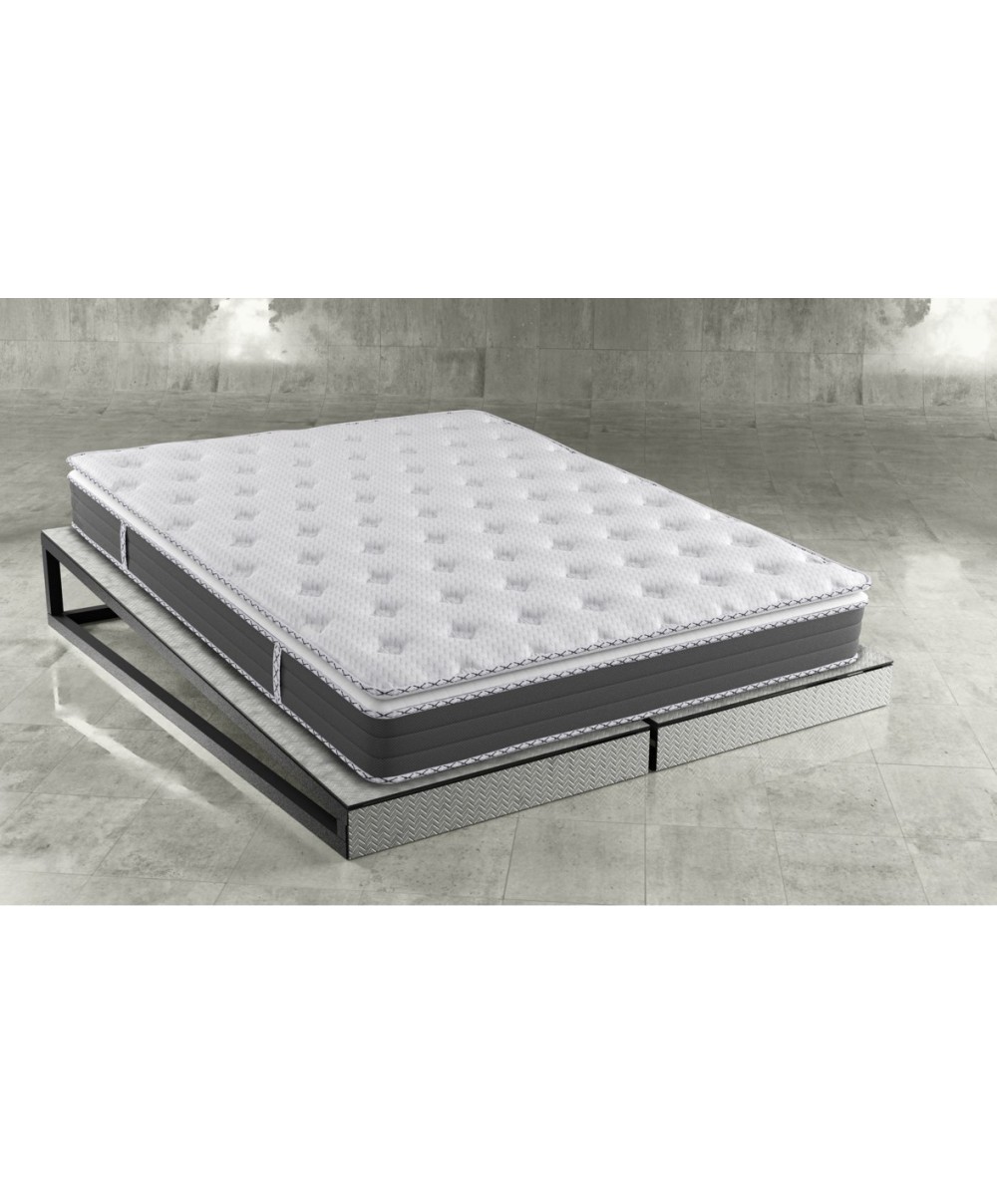 Mod. NUVOLA reversibile con due livelli di portanza, Flory Foam. 120 molle x m2. Livello di portanza H3. Altezza 23 cm cosi composti: 1,5 cm 18 DNS Flexy foam, 1,5 cm 24 dns Flexy foam, 5 cm 24 DNS FLEXY, 14 cm Bonell Spring. Dimensioni 120 x 190 cm.