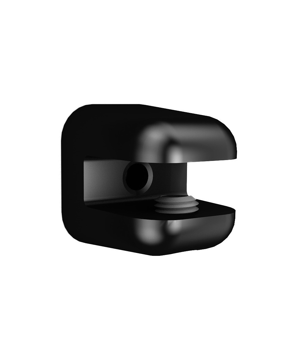 in nylon. Complete di viti e tasselli per il fissaggio. Per mensole di spessore max 10 mm Dimensioni mm 30x27 Colore nero Blister da 2 pezzi