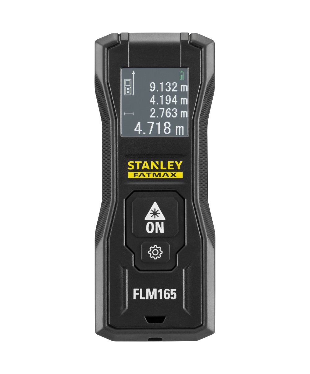Art. FLM165 FATMAX Portata 20 cm a 50 m. Precisione 1,5 mm a 10 m. Funzioni distanza,area, volume, calcolatrice Pitagora , misura minima/massima. Schermo LCD nero con scritte in bianco, migliore visibilit anche in condizioni di forte illuminazione. Autospegnimento dopo 90 secondi. Diodo rosso 630-680 nm. Batteria interna a Litio, fornito con cavetto USB per ricarica.Facilit duso operativit a due bottoni. Rivestimento in gomma, indice di protezione IP40.