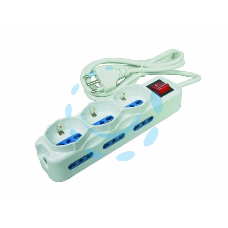 - spina da 16A, con 3 prese schuko+bipasso e 6 prese bipasso, cavo da 3x mmq.1 lunghezza mt.1,5 colore bianco