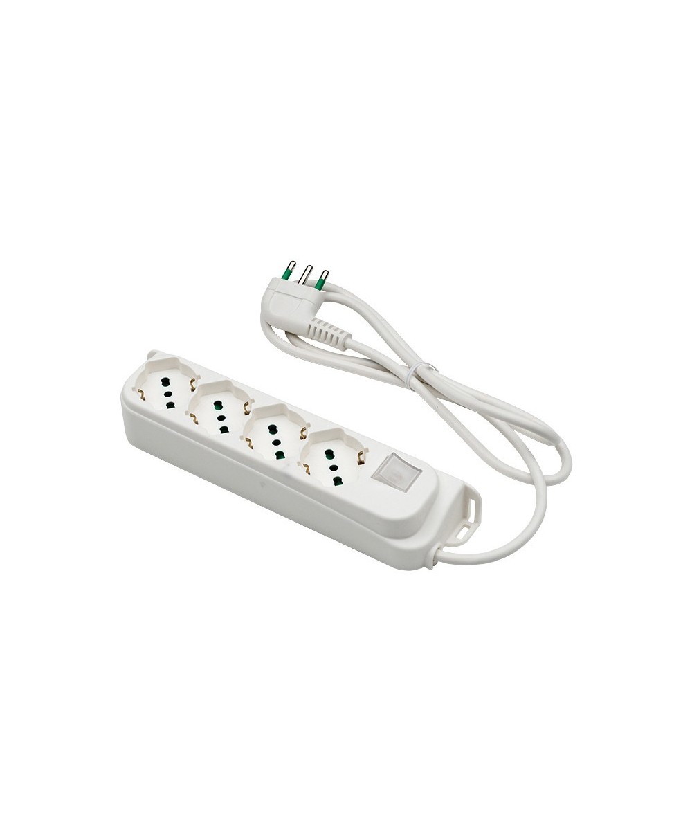 Art. 47.420 a norme di sicurezza CEI. Spina salvaspazio a 90 da 16A 2P+T. 4 prese bipasso 10/16A 2P+T - P40. Sezione cavo 3x1 mm H05VV-F. Interruttore bipolare luminoso. Tensione 250V - 50/60 Hz - IP20. Potenza max 3.500W. Lunghezza cavo 1,5 m. Colore bianco. Peso 306,4 g.