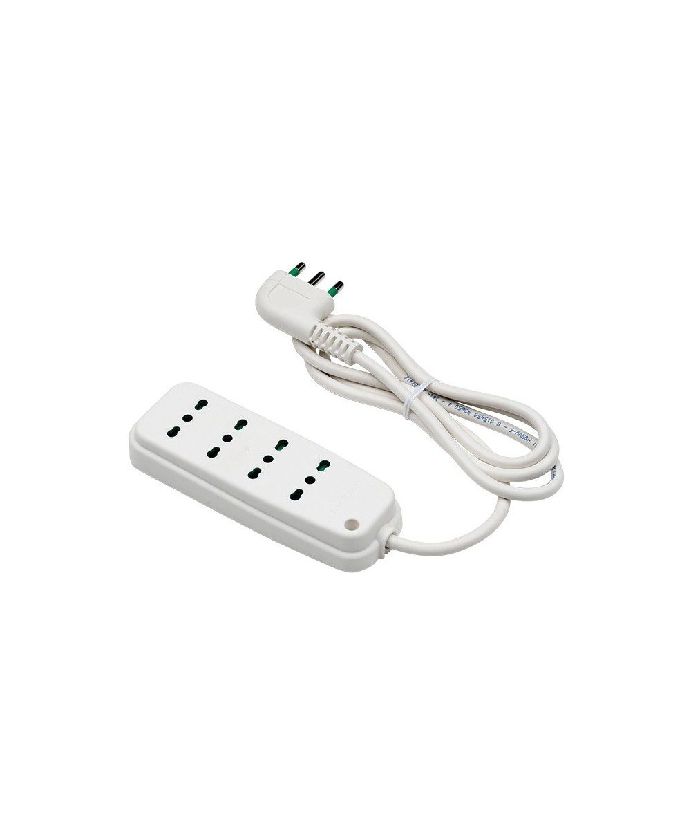 Art. 47.400 a norme di sicurezza CEI. Spina salvaspazio a 90 da 16A 2P+T. 4 prese bipasso 10/16A 2P+T. Sezione cavo 3x1 mm H05VV-F. Tensione 250V - 50/60 Hz - IP20. Potenza max 3.500W. Lunghezza cavo 1,5 m. Peso 220,4 g. Colore bianco.