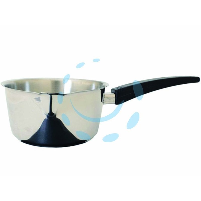 corpo acciaio Inox 18/10 con becco - manico bachelite anatomico - fondo semplice - lavabile in lavastoviglie