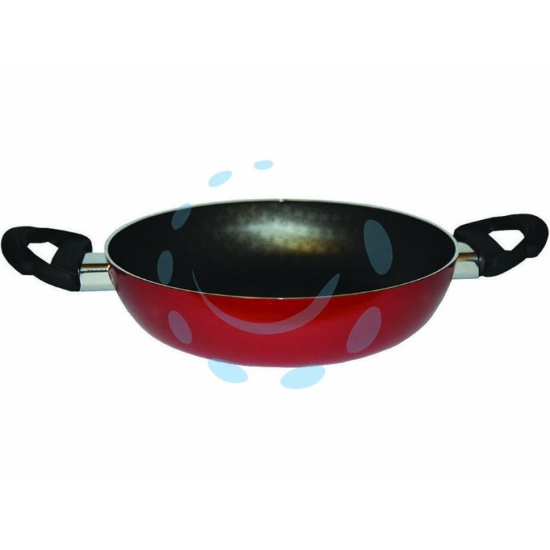 corpo alluminio fondo rettificato spessore mm 2,7 - rivestimento interno antiaderente doppio strato - esterno colore rosso - manici bachelite saldato