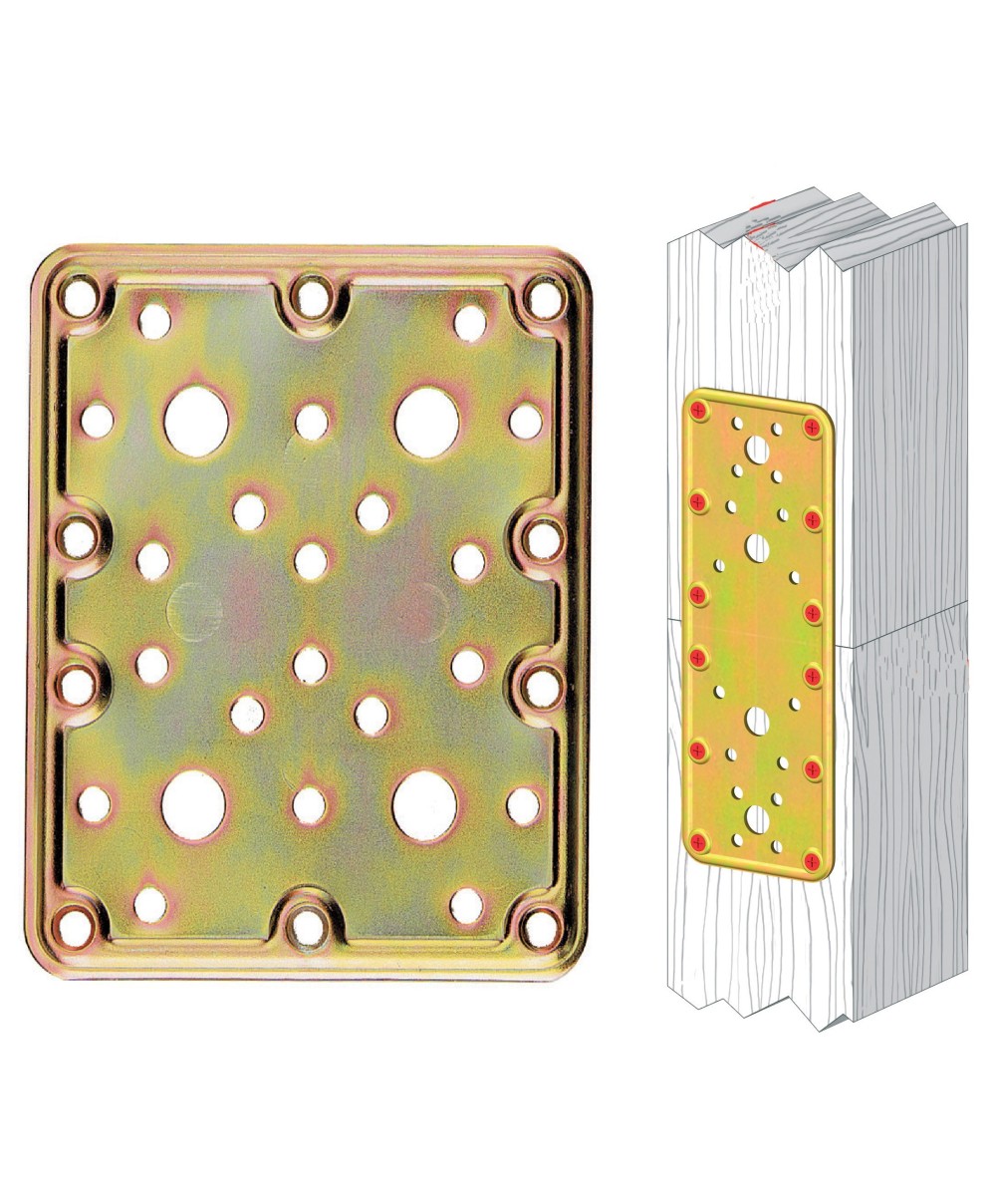 Art. 776 giunzione diritta, modello pesante. Realizzata in acciaio tropicalizzato per pannelli e grigliati in legno. Dimensioni 100 x 200 mm. Spessore 2,2 mm. Peso 330 g.