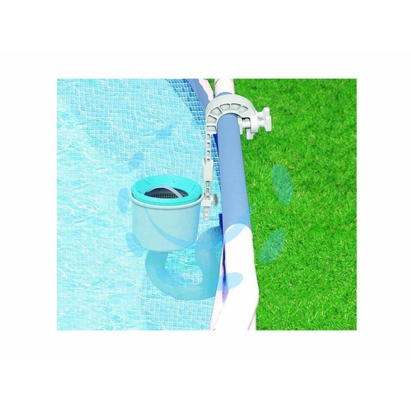 scarico automatico quando collegato alla pompa filtro - attura foglie e altri detriti - fissaggio facile a piscine con struttura in metallo o "Easy set" - plastica resistente in polipropilene, resistente ai prodotti chimici in piscina - dimensioni 19 cm (diametro esterno blu), 12 cm (diametro interno blu) e 4 cm (diametro del tubo - richiede una pompa con filtro con una portata della pompa compresa tra 3785 - 15140 litri/ora per funzionare - le prestazioni dello skimmer dipendono dalle dimensioni della portata della pompa del filtro - il prodotto include 2 tipi di "ganci": per le piscine "Easy Set" o piscine con anello superiore gonfiabile e tutte le piscine "Metal", "Prism" e "Ultra XTR Frame"