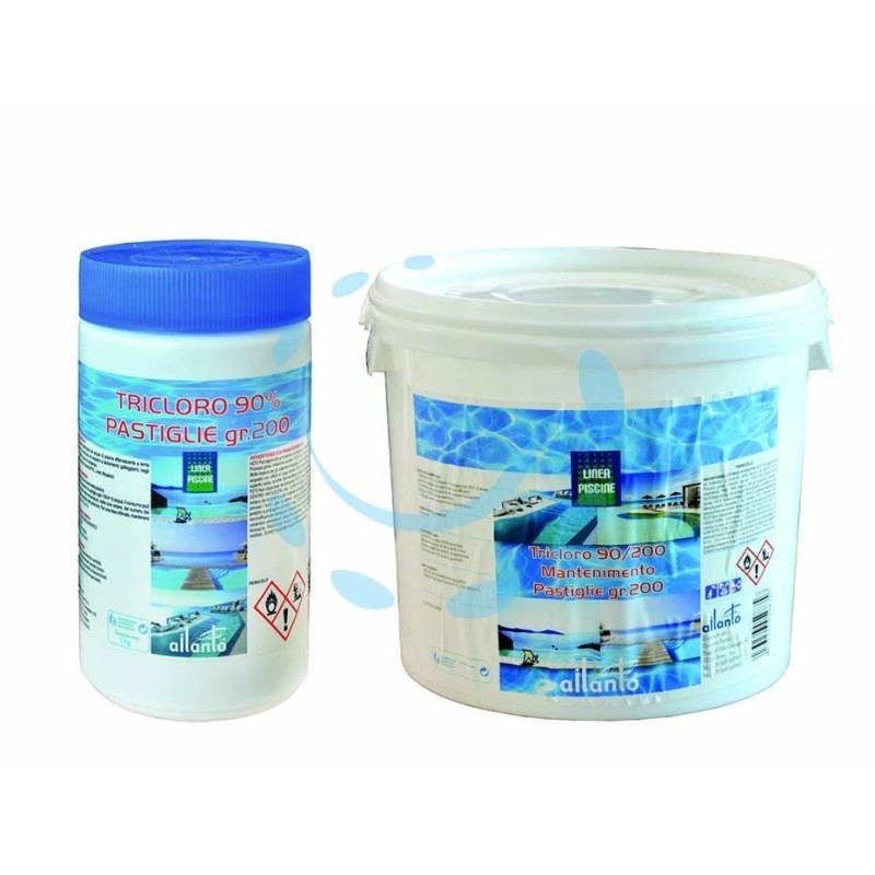 per una disinfezione ad azione prolungata, particolarmente indicato per piscine superiori a 1.000 litri; dose settimanale: (1 pastiglia da gr.20 ogni 1.000 litri) (1 pastiglia da gr.200 ogni 10.000 litri), si consiglia l’uso del dosatore galleggiante