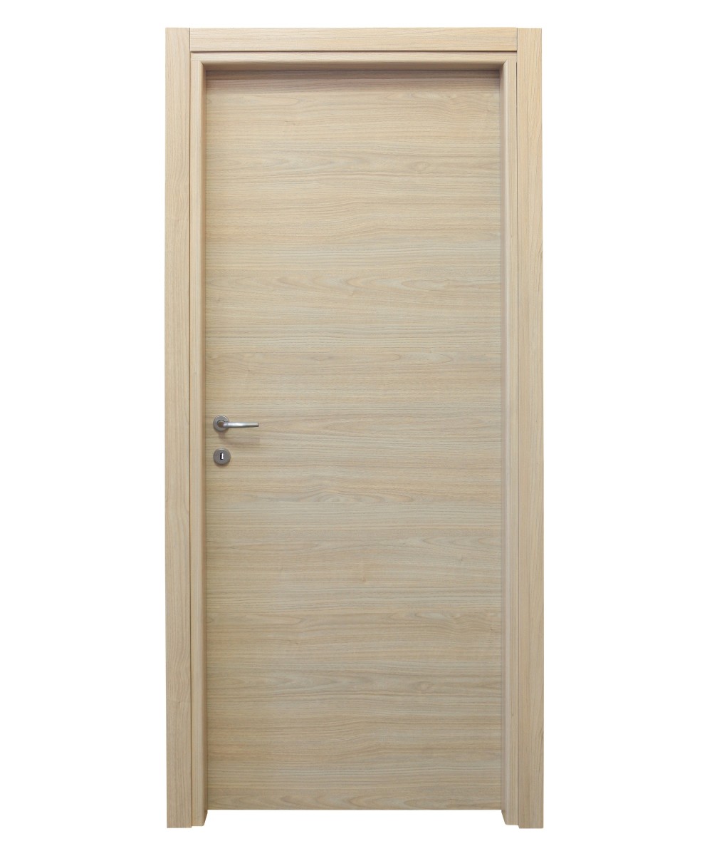 Anta tamburata di spessore nominale 44 mm, riempimento in cartoncino trattato, placcato con pannelli in MDF spessore 3/4 mm nobilitato con carta finish. Telaio piatto in MDF di spessore 40 mm con guarnizione di battuta di gomma. Coprifilo telescopici esterno ed interno in Mdf da 60 mm con aletta utile da 8 mm. Ferramenta serratura mediana. Anuba reversibili. Dimensioni 210x80 cm. Colore Rovere sbiancato