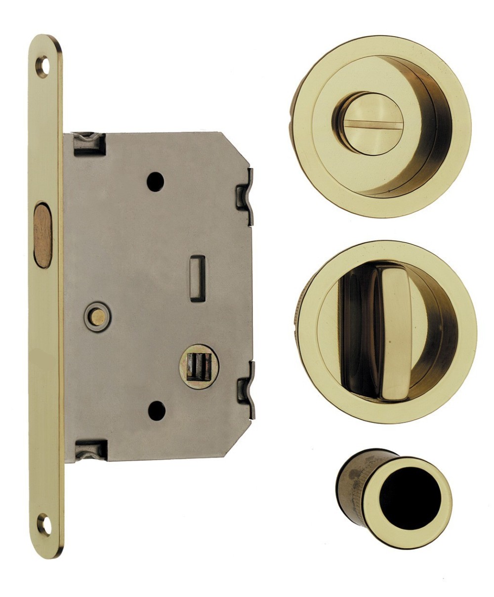 composto da: - serratura solo quadro entrata 50 mm - nicchia ø 48 mm con nottolino incorporato - nicchia ø 48 mm con vite di emergenza - nicchia di trascinamento ø 25 mm Finitura cromo satinato