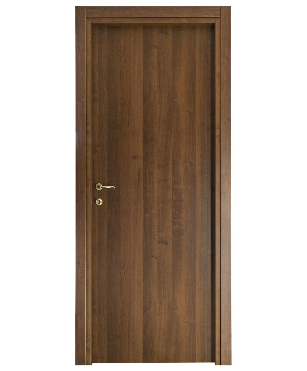 porta tamburata spessore 44 mm intelaiata con massello di abete 28x40 mm, ripempimento con nido dape microforato supercollato, placcato con pannelli MDF spessore 3-4 mm rivestiti in micro laminato. Telaio piatto in mdf di sepssore 40 mm con guarnizione in battuta antirumore completo di cornici telescopiche in MDF di sezione 70x10 mm. Serratura e 3 cerniere. Anuba reversibili. Dimensioni cm 60x210 Colore noce
