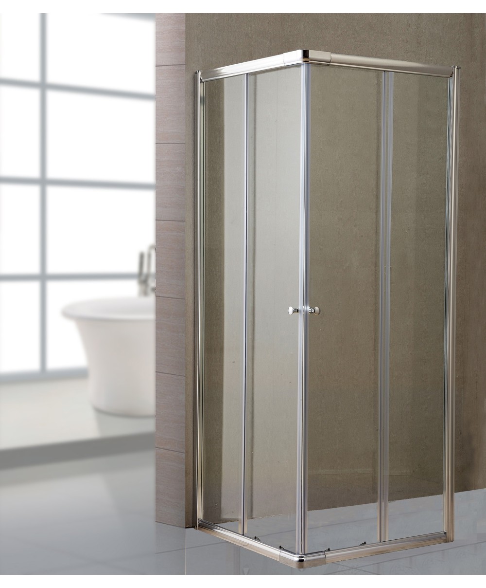 Lato fisso doccia con profili in alluminio cromato liscio. Parete in cristallo trasparente con spessore da 6 mm. Altezza 185 cm. Estensibilità 64÷70 cm.