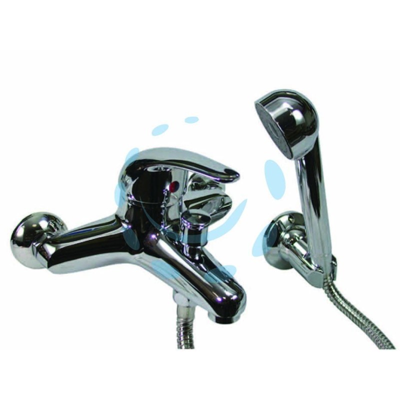 in ottone cromato, getto con aereatore, doccia con supporto a muro e flessibile - cartuccia ø mm.40 (peso gr.980 escluso accessori)
