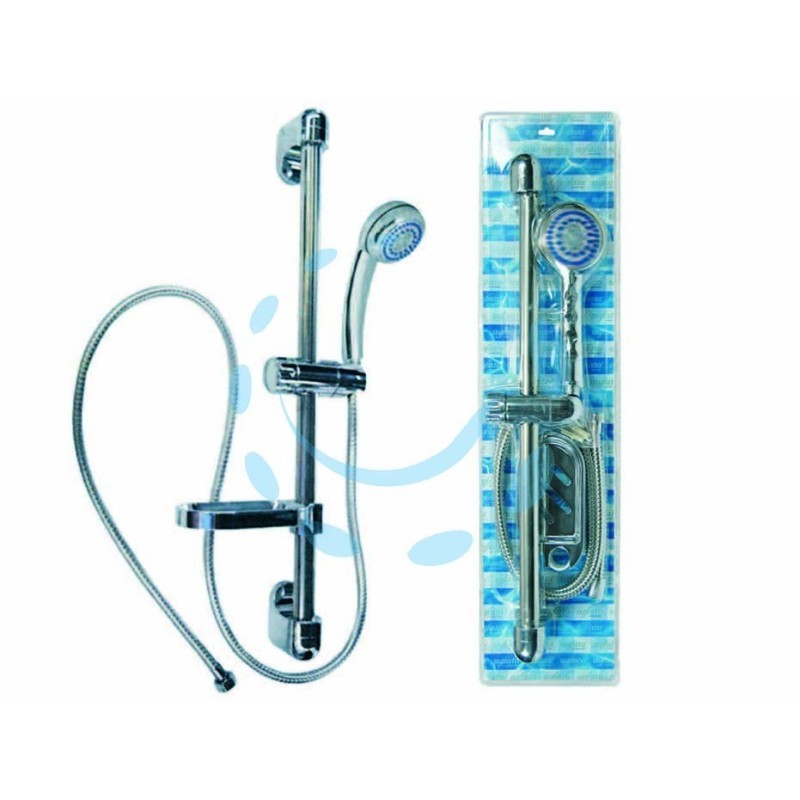 - cm.60h - cromato con asta ø mm.20 con portasapone, flessibile con attacco conico e, doccia con getto a 1 funzione, ugelli anticalcare